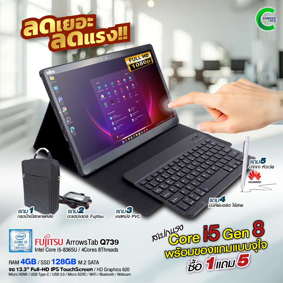 แท็บเล็ต Fujitsu ArrowsTab Q739-Core i5 GEN 8 /RAM DDR4 /SSD m.2 128GB /13.3” FHD IPS /สภาพดีมีประกัน By Comdee2you