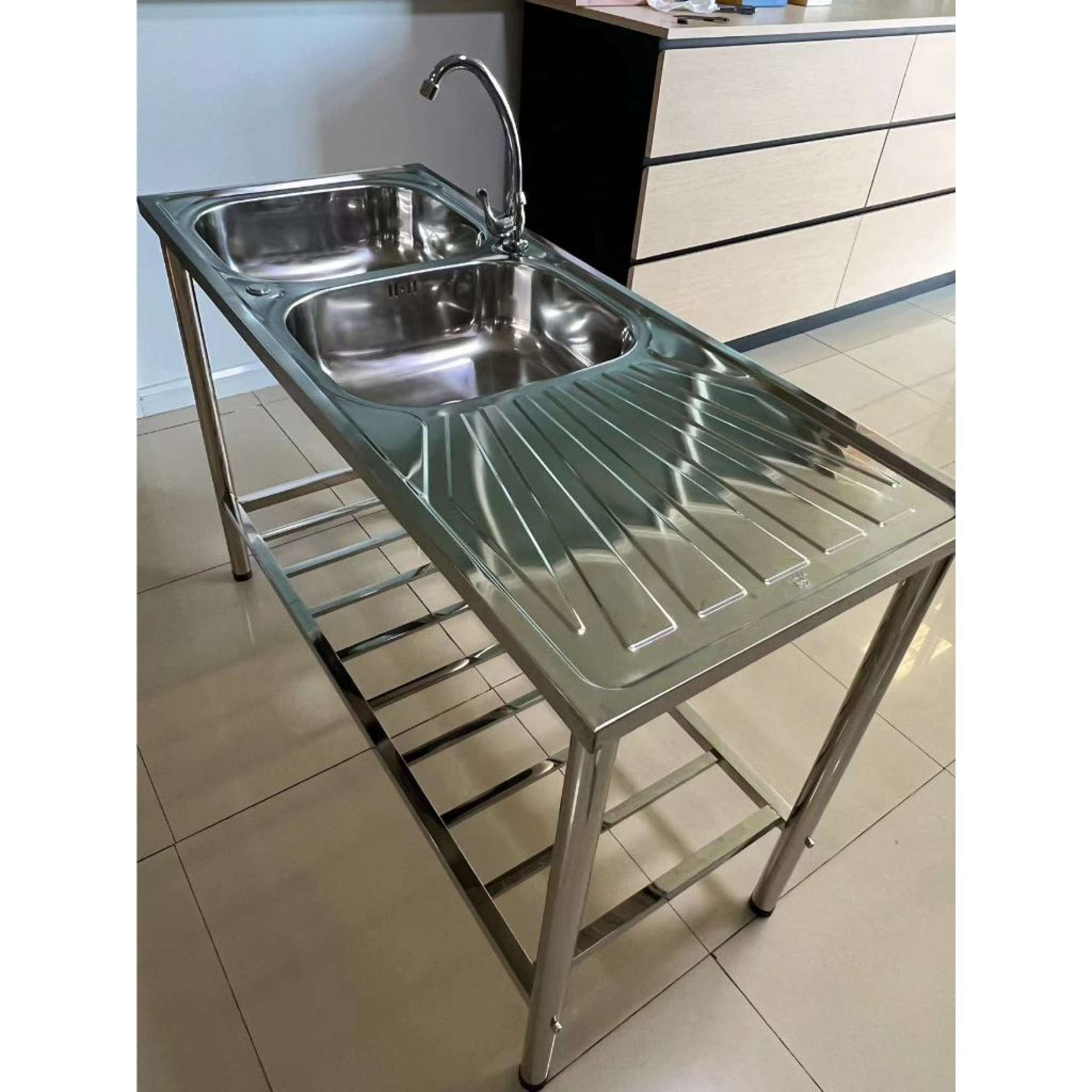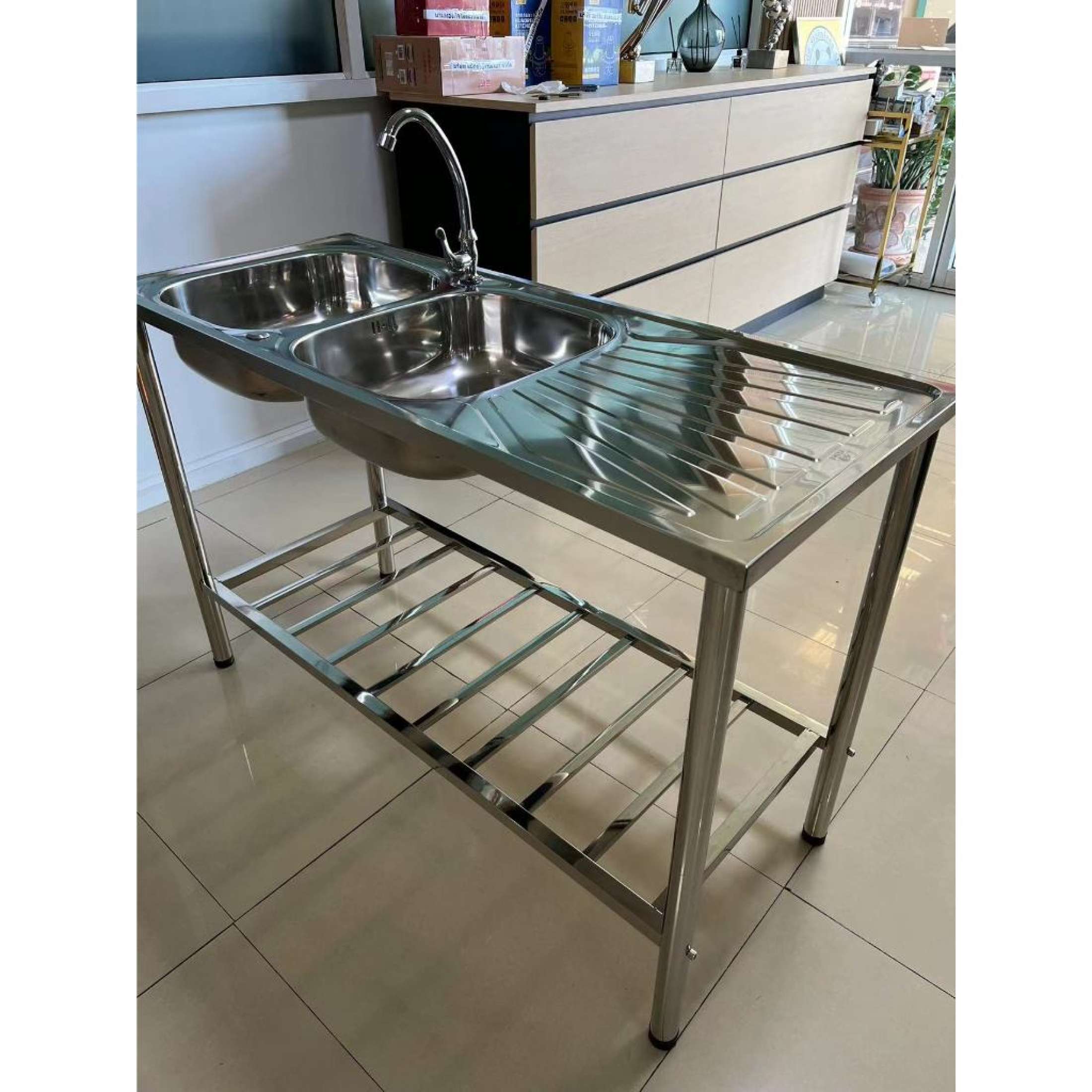 🔥ราคาต่ำสุด🔥FANXING ซิงค์ล้างจาน อ่างล้างจาน 2หลุม 3ชั้น 120*50*80 แถมก๊อกน้ำฟรี ไม่เป็นสนิม 100% สแตนเลส304 ซิ้งล้างจาน