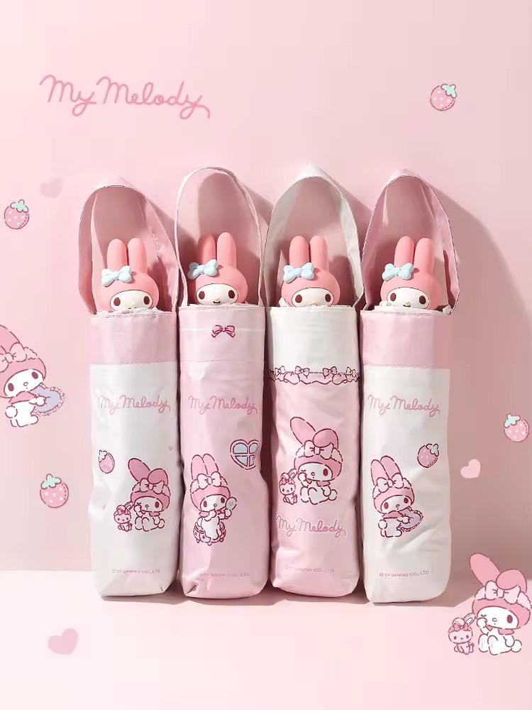 Sanrio Official Small Five-Fold Umbrella Manual Sunscreen น่ารัก ฤดูร้อน Rainproof Sunshade High Aesthetic Value Collectible Toy