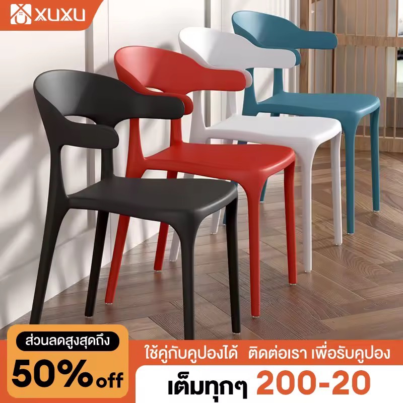 XUXU เก้าอี้ เก้าอี้กินข้าว รับน้ำหนักได้ 300kg เก้าอี้มีพนักพิง ซ้อนได้ พนักพิงหลังโค้ง เก้าอี้พลาสติก เก้าอี้ทำงาน ห้องอาหาร ห้องรับแขก